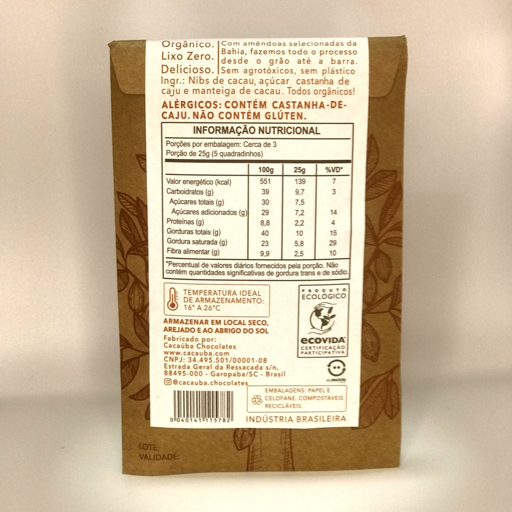 Não contém glúten / Alérgicos: contém castanha de caju